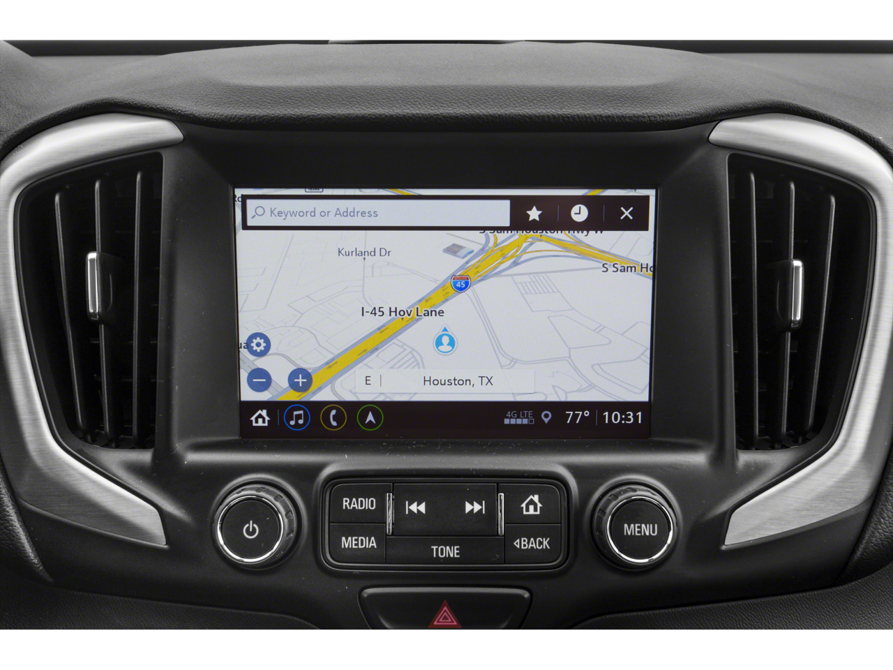 - Audio system, 8" diagonal GMC Infotainment System with Navigation includes multi-touch display, AM/FM/SiriusXM stereo, Bluetooth® streaming audio for music and most phones, Android Auto and Apple CarPlay capability for compatible phones, advanced voice recognition, in-vehicle apps, personalized profiles for infotainment and vehicle settings. Includes greater memory