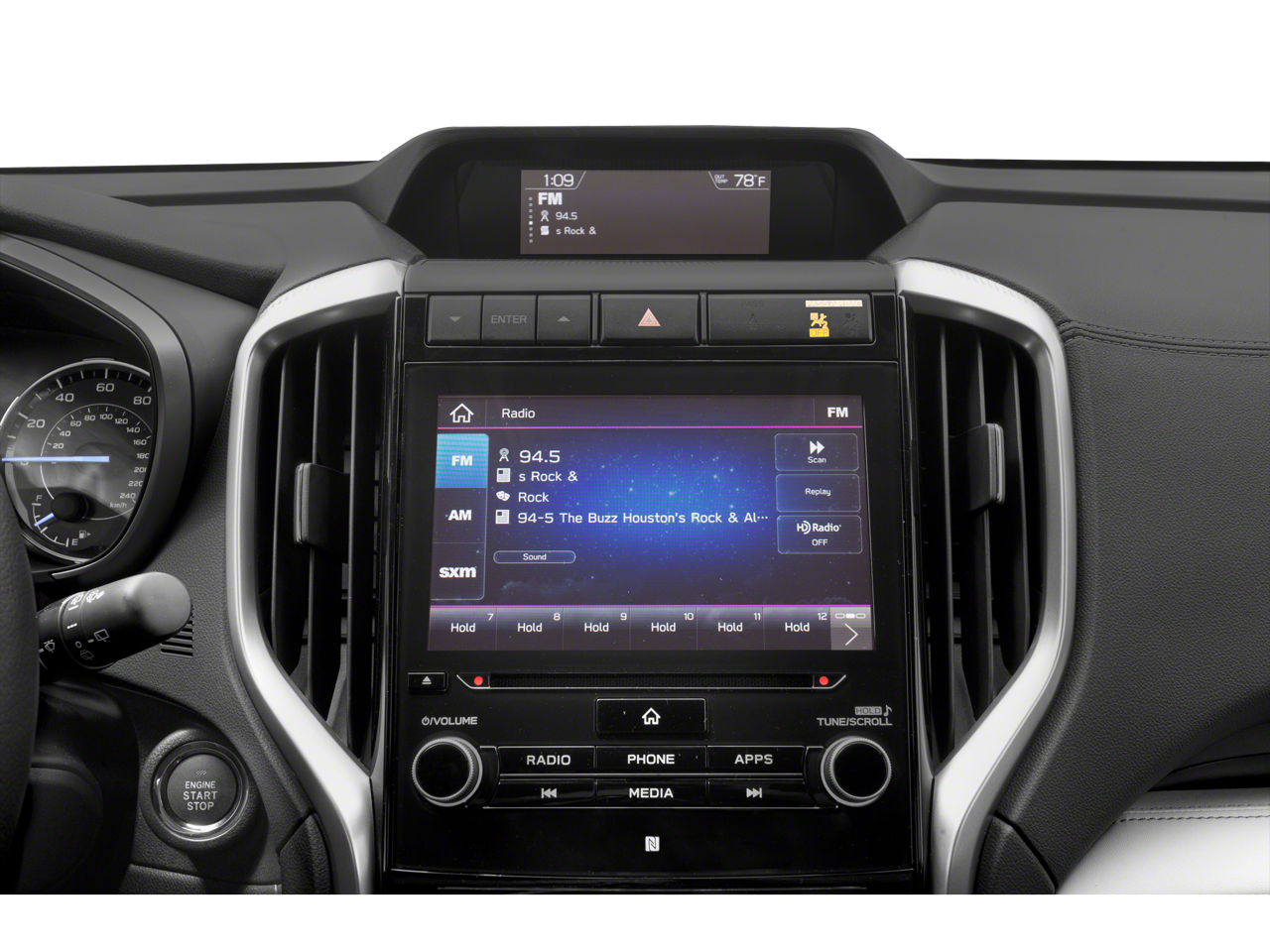 - Radio: Subaru STARLINK 8.0" Multimedia Plus System -inc: AM/FM stereo HD Radio w/single disc CD player, MP3/WMA/CRR/RW file capability, multi touch gesture high resolution LCD display screen, voice activated controls, Bluetooth audio streaming connectivity, Bluetooth hands-free phone connectivity, Bluetooth hands-free SMS text messaging connectivity (applicable w/compatible cell phone), Near Field Communication (NFC), iPod control capability, SiriusXM All Access radio (subscription required), SiriusXM Travel Link (subscription required), smartphone integration for Aha, Android Auto, CarPlay and Pandora, STARLINK cloud applications, steering wheel controls for audio and Bluetooth, 6 speakers, 3.5mm auxiliary input jack and front, second and third row dual USB ports